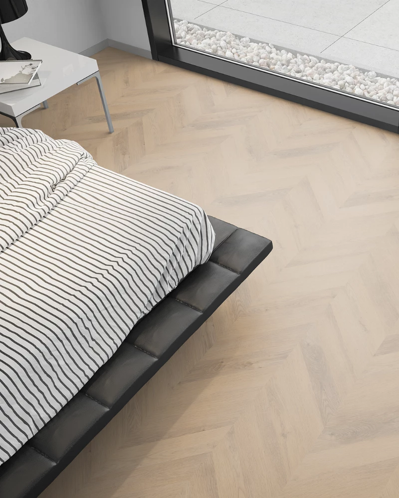 De prachtige planken en de unieke houtdesigns lenen zich er dan ook perfect voor om deze vloer in een visgraat, Hongaarse of Weense punt patroon te leggen. Of kies je voor een rustig plankpatroon en leg je de planken naast elkaar?